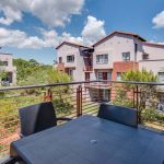 The balcony looks onto the gardens and has a 4-seater table where guests can relax and enjoy the outdoors.